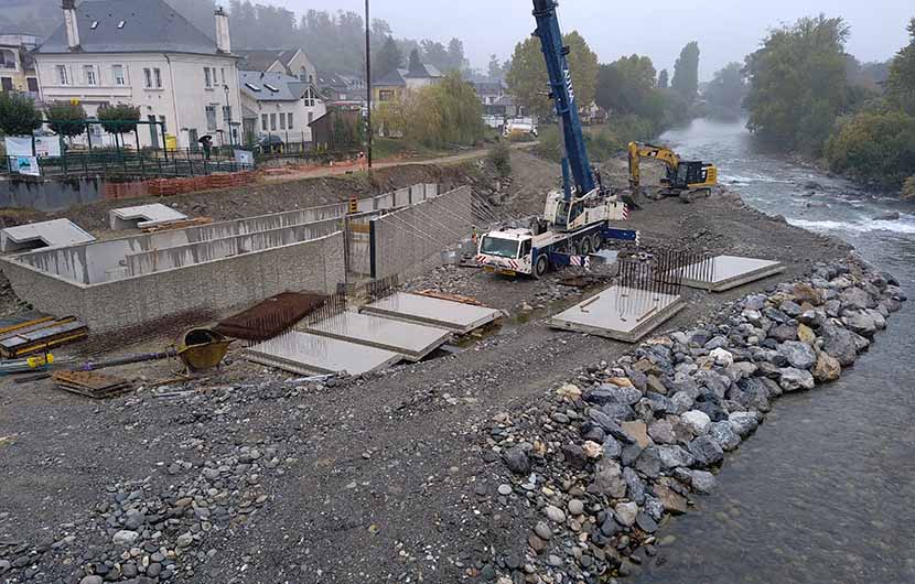 Situé en cœur de ville, le site de la poste de Nay a accueilli l’ensemble des partenaires pour une visite des travaux en cours. L’ancienne passe à poissons n’étant plus fonctionnelle, elle a été détruite au profit d’une passe à bassins, qui permet un franchissement du seuil facilité pour les poissons. Par ailleurs, une passe spécifique pour les canoës-kayaks est aussi ajoutée pour permettre une circulation en toute sécurité. Débutés à la fin du mois de juillet 2022, ils devraient s’achever courant octobre de cette même année.
