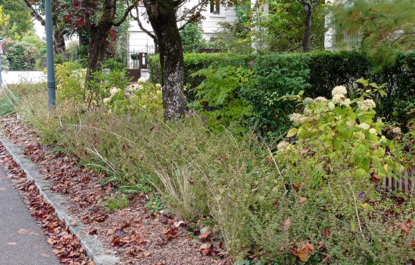 La stratégie de Sceaux et de s’appuyer au maximum sur les aménagements existants sans recourir à des travaux d’envergure pour acheminer l’eau de pluie : les bandes végétalisées seront alimentées directement en eau pluviale via les pentes naturelles de la voirie.